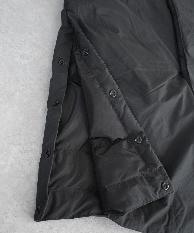 | 素材 | 表地:綿68%、ナイロン32% 中綿:ダウン80%、フェザー20% 裏地:ポリエステル100% >>素材・生地・加工についての詳細はこちら |