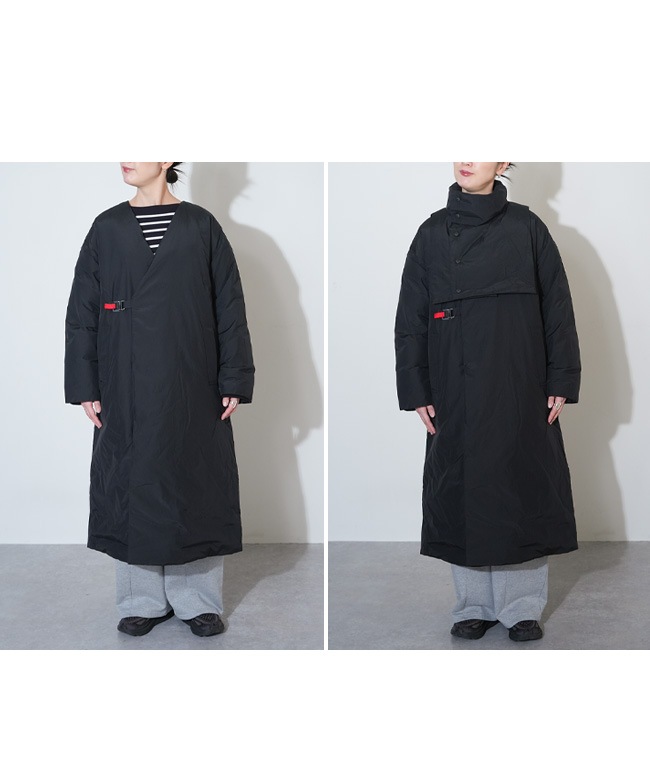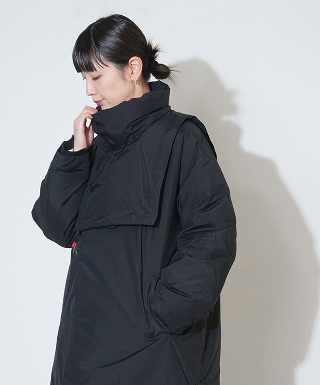 ・取り外しできるスタンドカラーパーツ付きで、首元まで暖かいスタンドカラーと、すっきり見えのVネックを気分で切り替えられます。