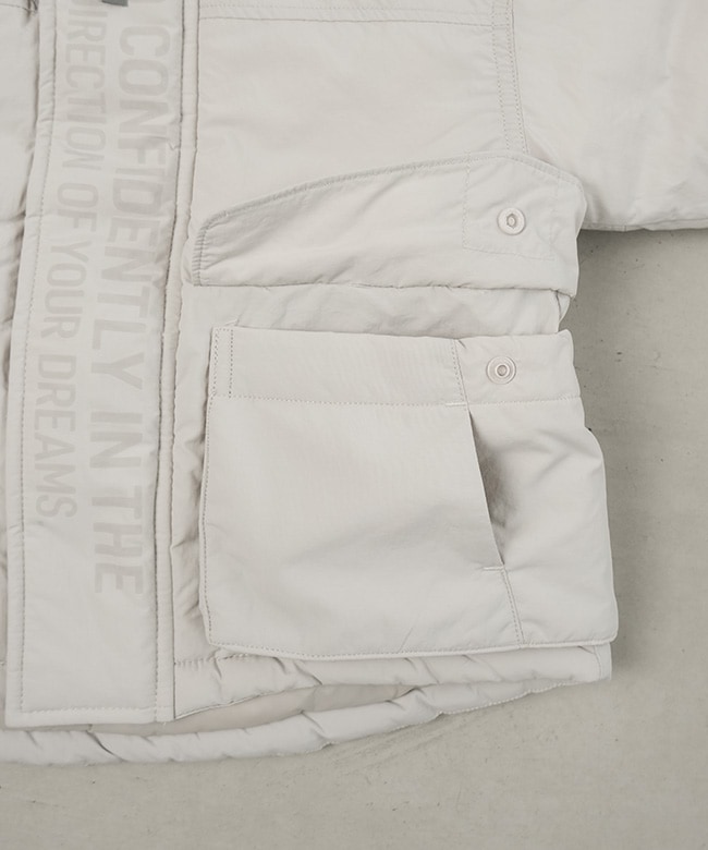 中綿にはポリエステルを使用し、保温性を確保しつつも重すぎない仕上がり。