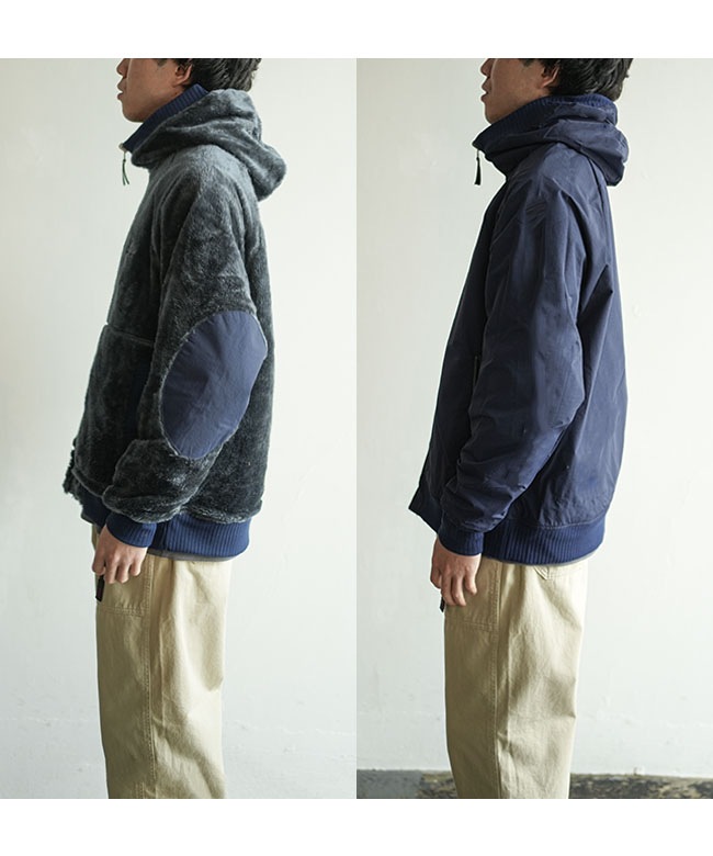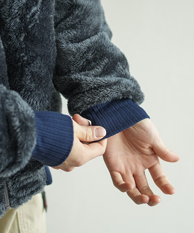 ・ボア面は保温性が高く、ナイロン素材のエルボーパッチがアクセント。