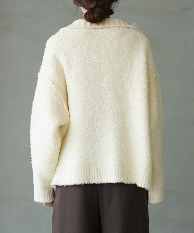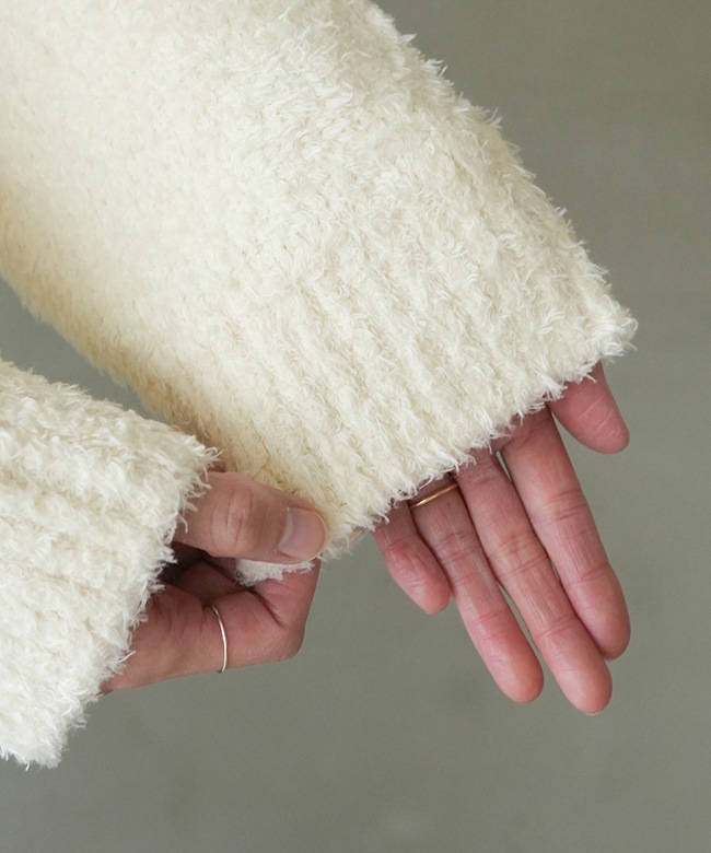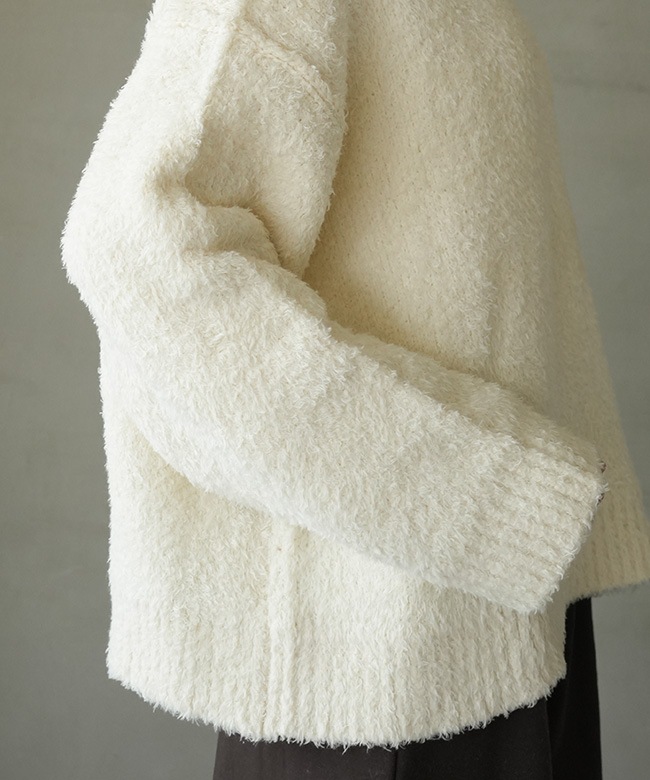 透け感:02.アイボリーのみ網目にややあり / 伸縮性:あり / 裏地:なし 素材の特性上、起毛部分から羽毛の脱落が発生します。 他の物への羽毛付着にご注意ください。 羽毛が付着した際はテープやブラシで除去してください。 濃淡差があるものと重ね着はご注意ください。 ※屋外(太陽光)と、室内(蛍光灯)とでは色の見え方には違いがございます。 ご使用のモニターや環境によっても色の見え方が異なりますことをご理解ご了承くださいませ。 |