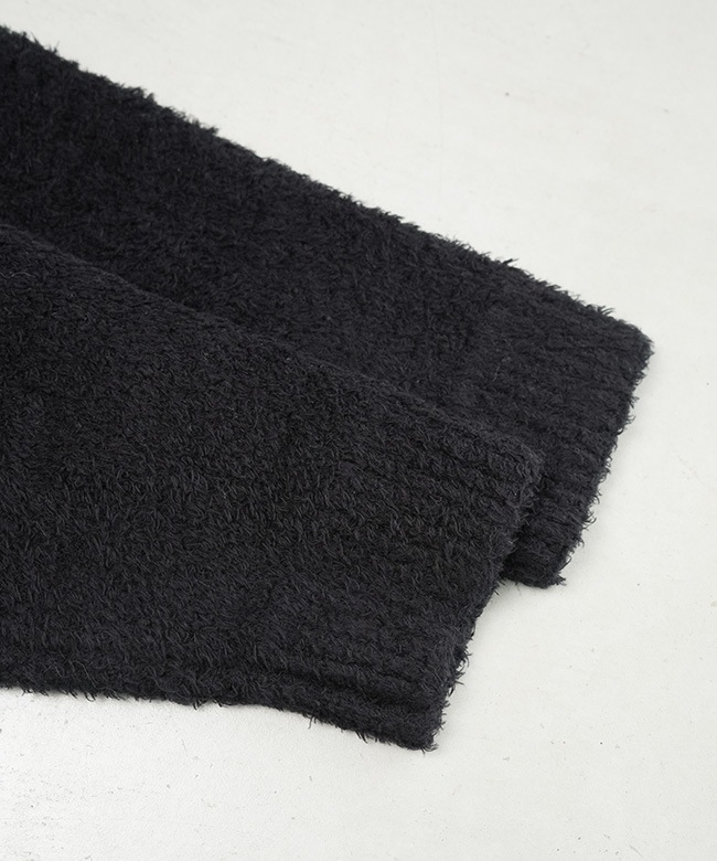 暖かみのある素材感を活かすため、シルエットはシンプルに仕上げ、ヒップにかかる丈感で上からアウターを重ねても着やすいサイズ感に。