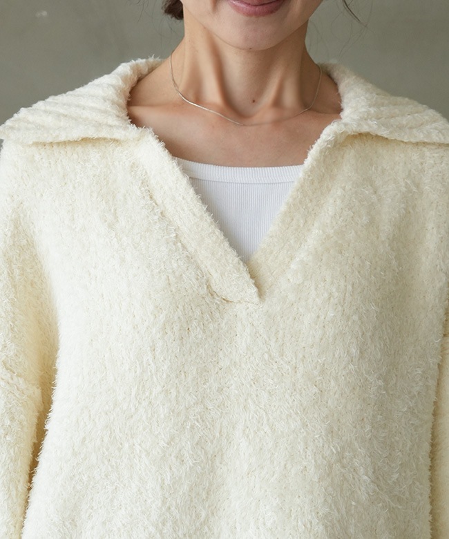 ふんわり柔らか、フェザーヤーンスキッパープルオーバー