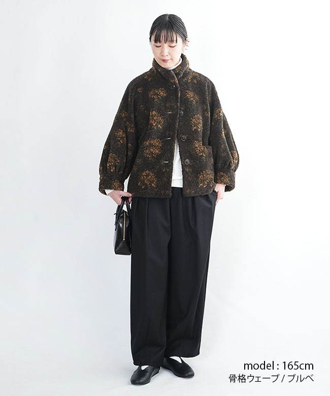 上品な柄とやわらかな丸み。大人可愛いが宿るアウター