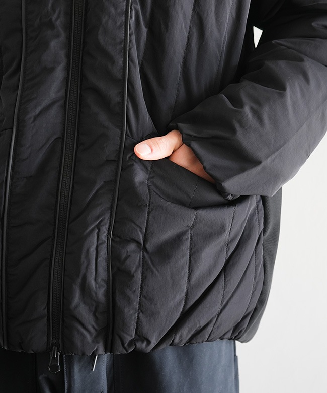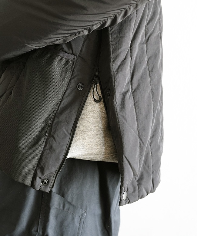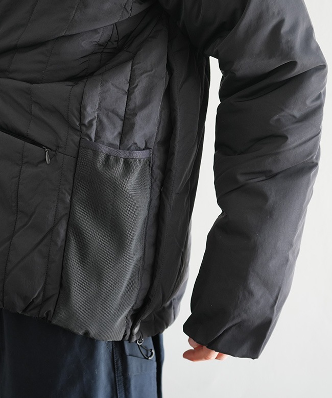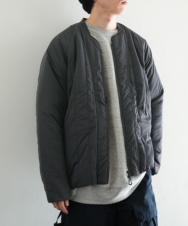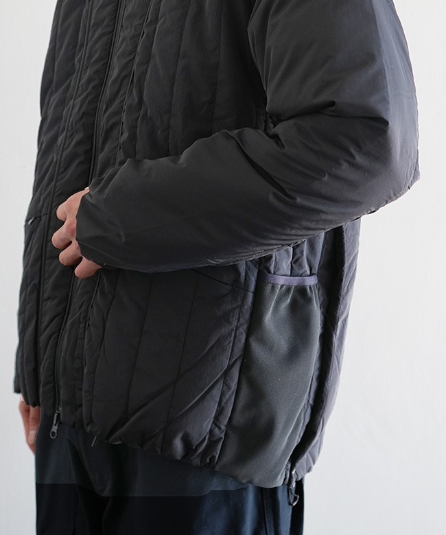 ・プリマロフトを封入した高い防寒性はもちろん、デザイン性と各部のギミックによる機能性を高いレベルで表現したwfeldならではの逸品です。