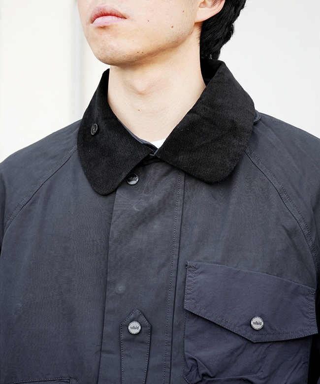 ・クラシカルなハンティングジャケットをベースに、現代の撥水素材を組みあわせてアップデートしたショート丈のカバーオール。