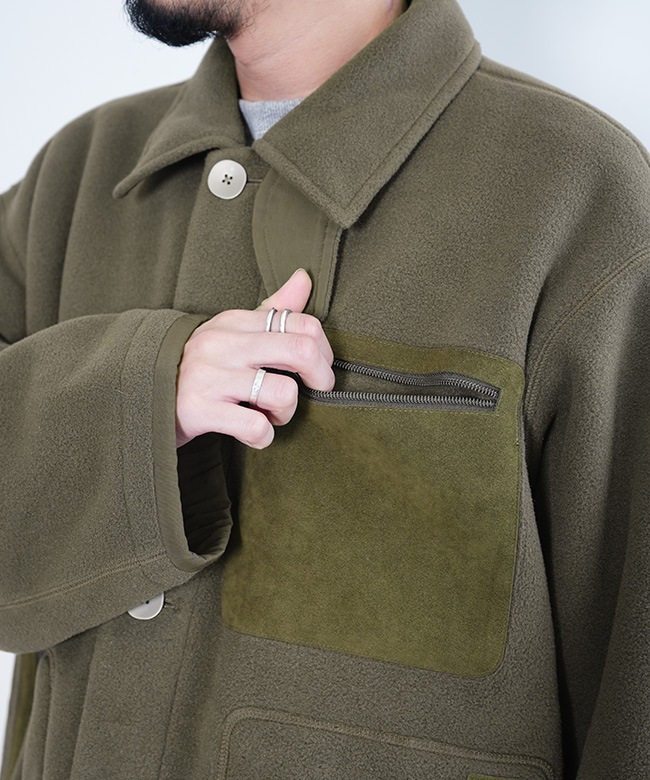 ・軽量かつ保温力に優れ、通気性があり、洗濯をしても乾きやすい高品質なフリース生地"POLARTEC 300"を使用した、ワークウェア型のジャケット。