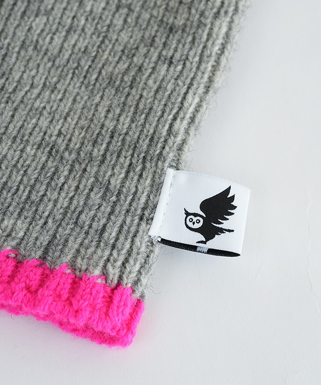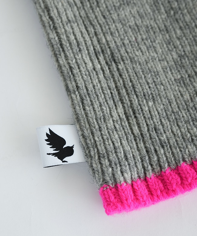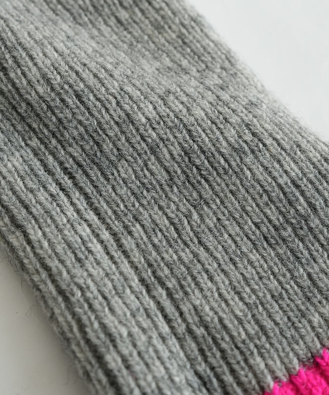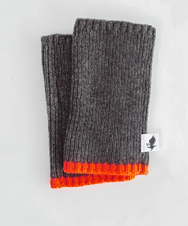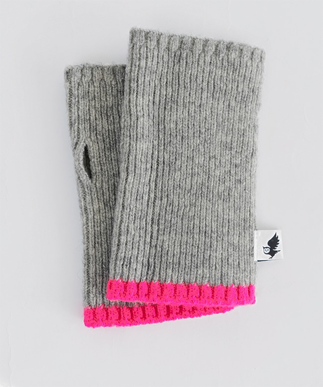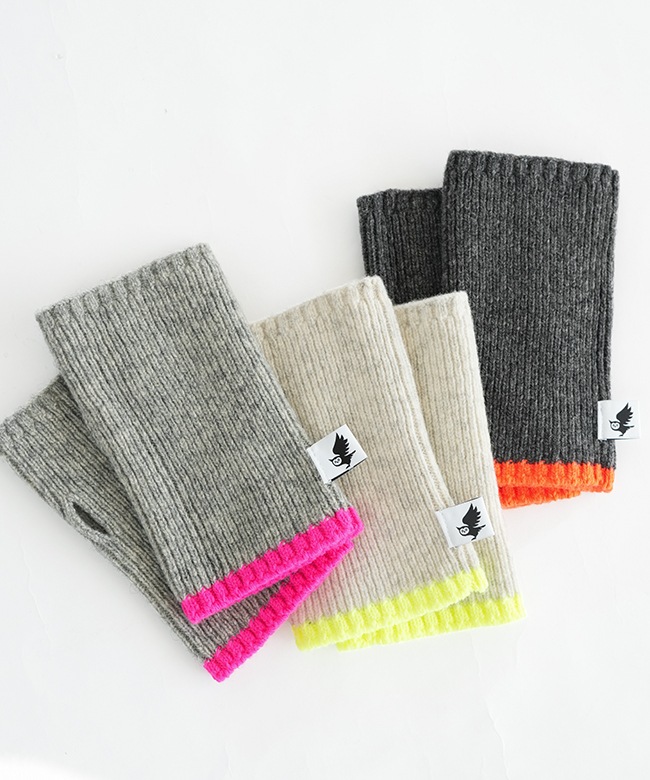 蛍光ポイントカラーがアクセント。リブ編みハンドウォーマー