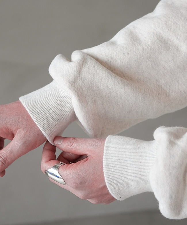 大きすぎないゆったりした身幅で、手のひらを覆うくらいの袖丈になりました。