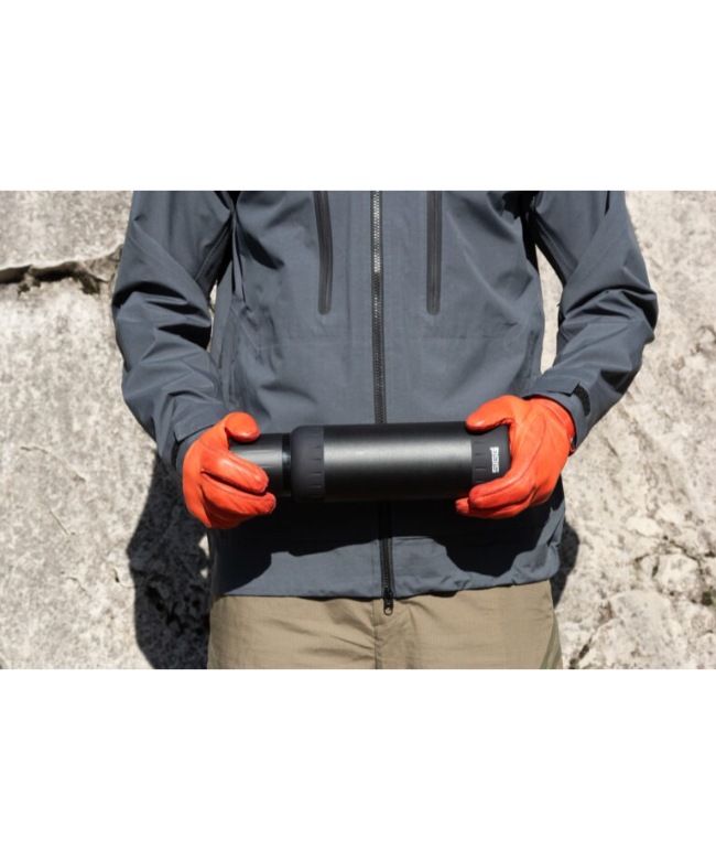 本体上部のラバーグリップでグローブ着用時でも開閉しやすく、滑りやすい岩場や雪上で安定性を保つため底面にもラバーを採用、落下や衝撃に強い高耐久18/8ステンレススチール製ボディに加え、夜間でも見つけやすいマッターホルンモチーフの蓄光ロゴを備えています。
