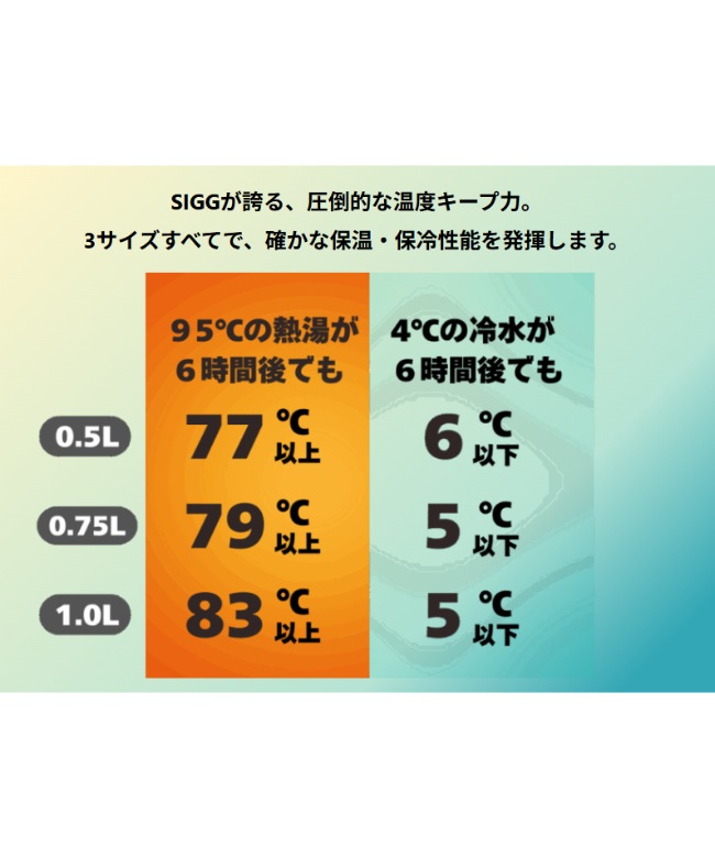 この“ダブルの断熱構造”によって、飲み物の温度を驚くほど長時間にわたってキープ。