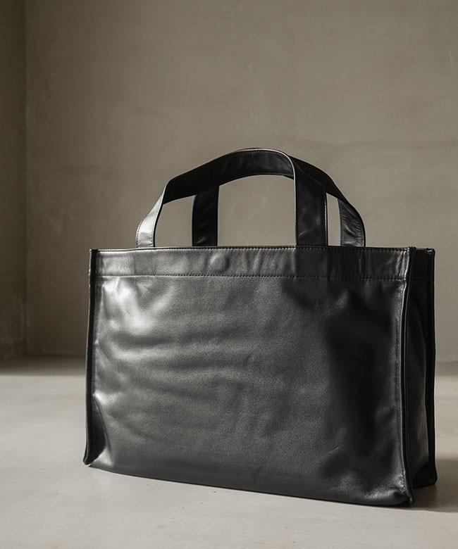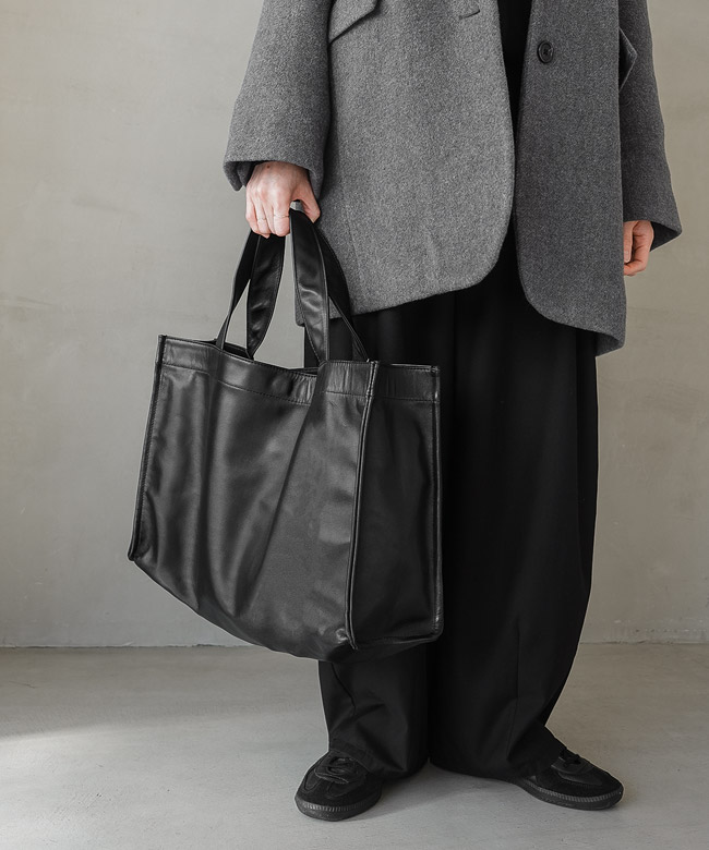 ・レザーの美しさをそのままに、雨の日にも安心して使用できるウォータープルーフのビッグトートバッグ。