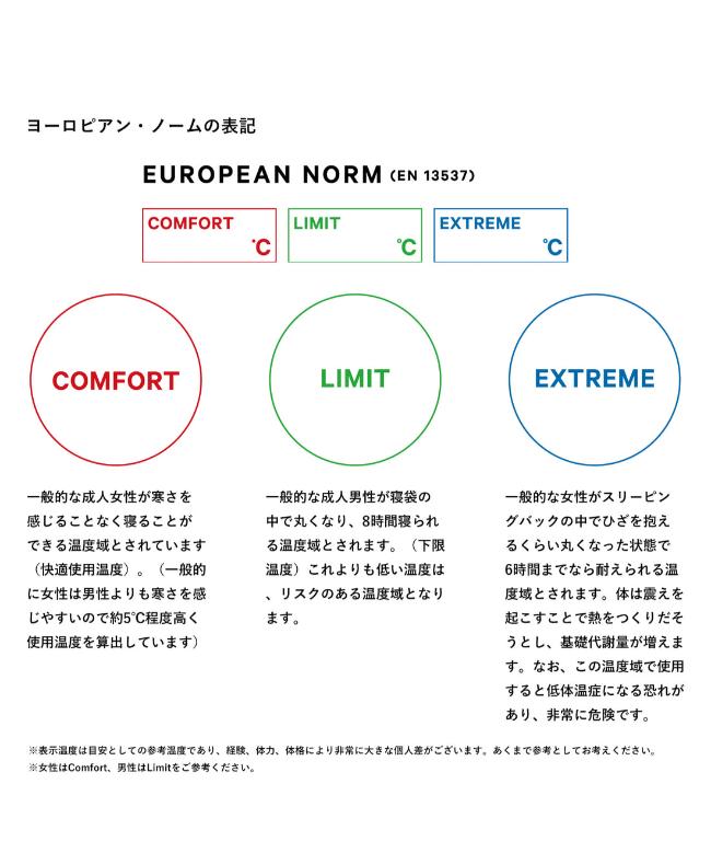 【生地】 表地:15dn オーロラテックスR 裏地:15dn リップストップナイロン 【内部構造】 ボックスキルト構造 【フィルパワー】 スパニッシュダックダウン90-10% (760FP) 【ダウン量】 600g 【サイズ】 ショート(~身長165cm)、レギュラー(身長166cm~178cm)、ロング(身長179cm~185cm) 【収納サイズ】 φ15×29cm 【総重量】 1,100g 【快適使用温度/下限温度】 -4℃ / -11℃ |
