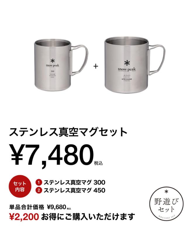 「ステンレス真空マグ 300」と「ステンレス真空マグ 450」のセットです。