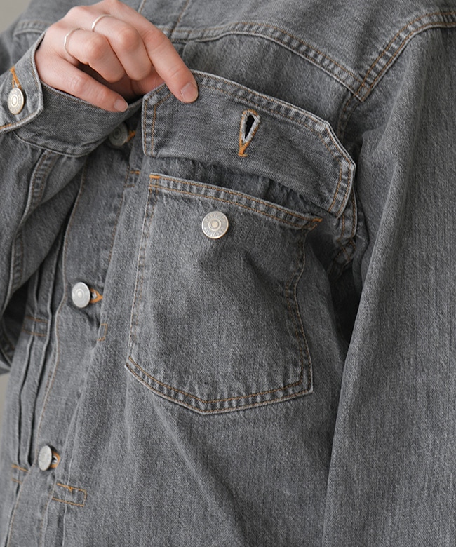 ユニセックスで着用でき、デイリーからセットアップスタイルまで幅広く活躍するデニムジャケットです。