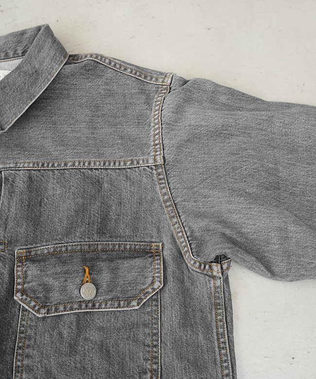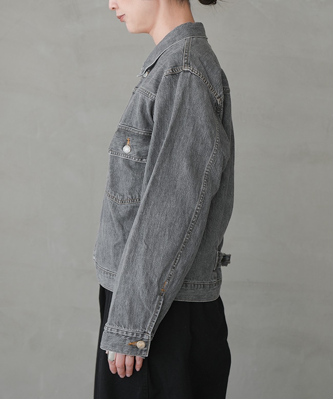 10オンスのブラックデニムにフェード加工を施し、ヴィンテージライクでこなれた表情に仕上げています。
