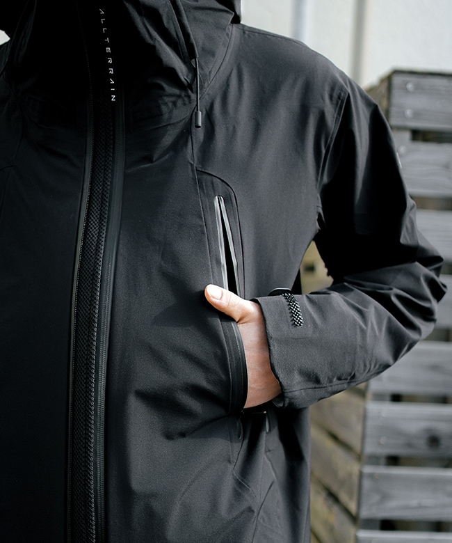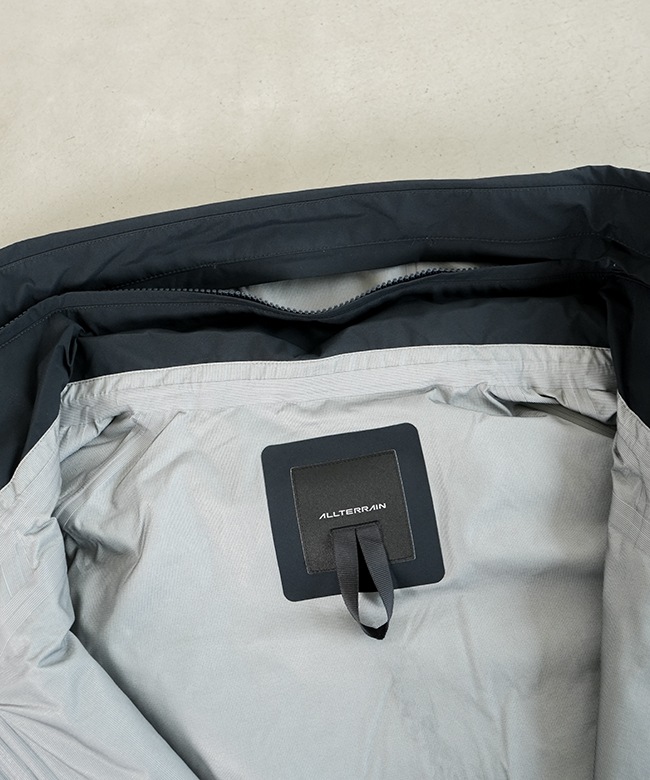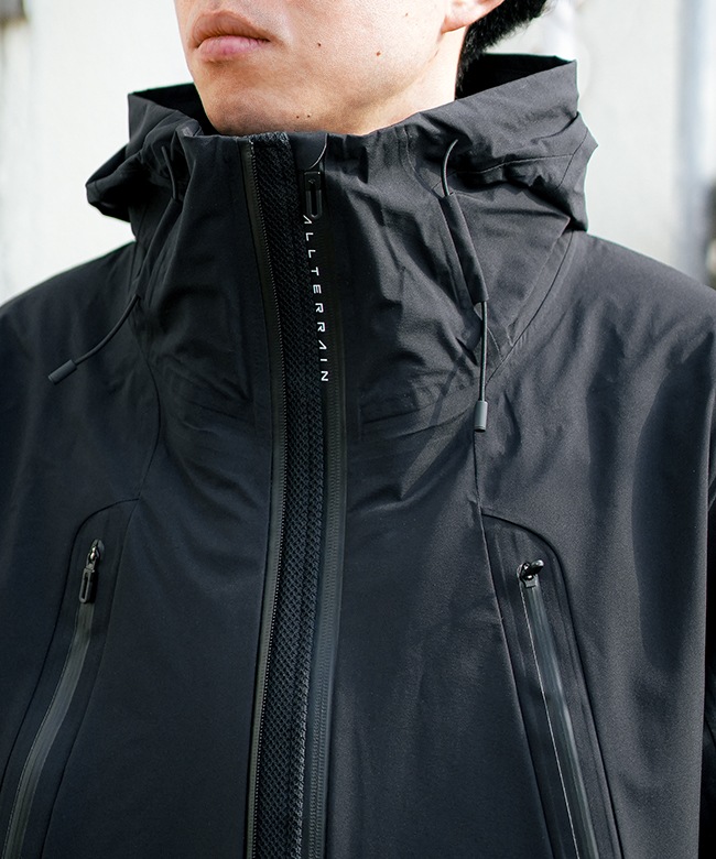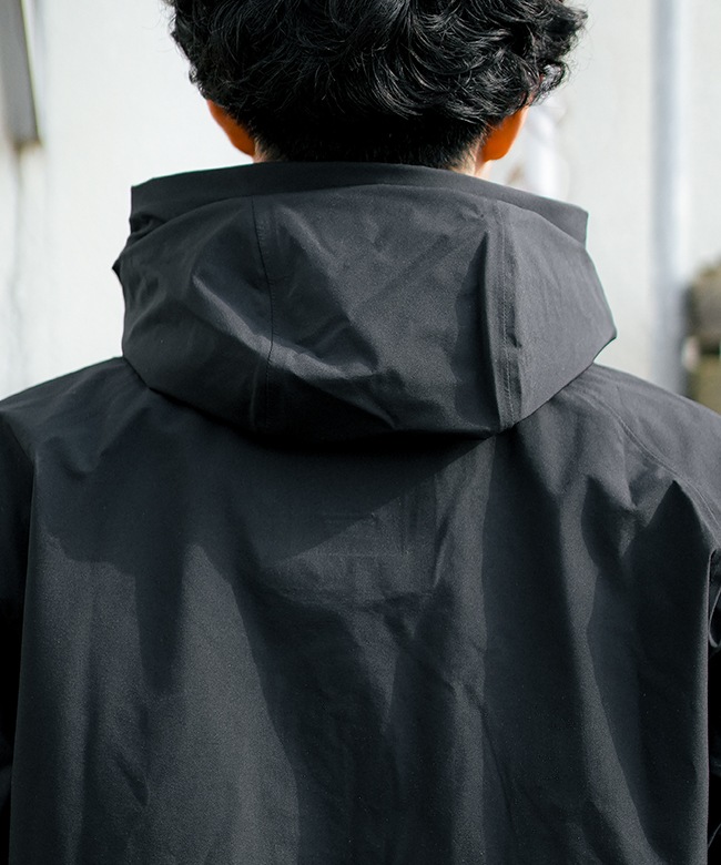 ・また、フードをコンパクトに収納するだけでなく、雨などの悪天候下での着用も考慮しフードへの水たまりを防ぐパラフードシステムを採用。