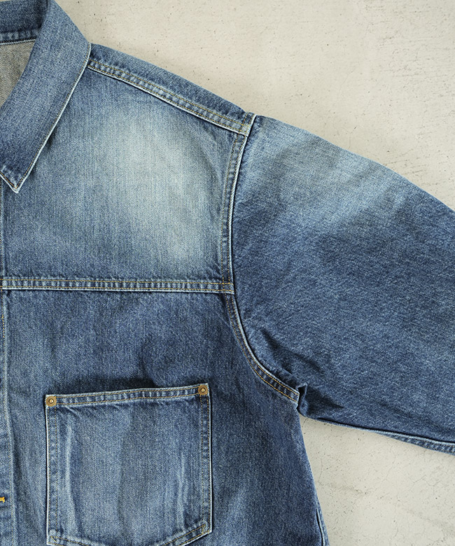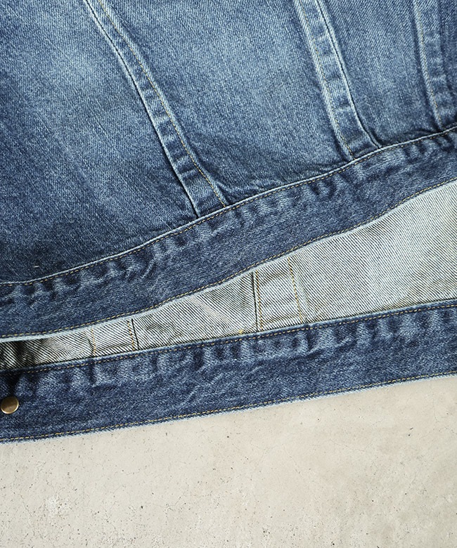 ・オーセンティックなジーンジャケットのデザインをベースに、フロント、袖、バックの裾部分にダーツ処理を施したデニムジャケット。
