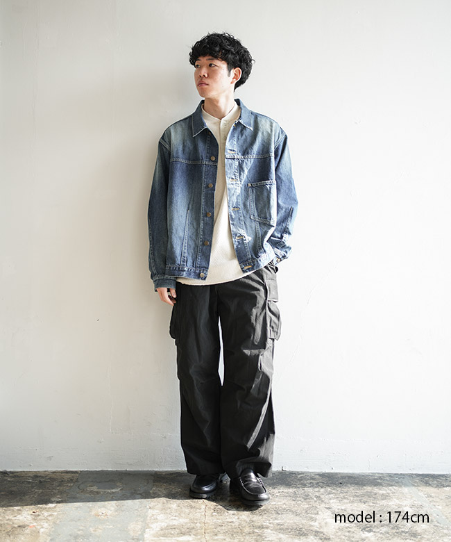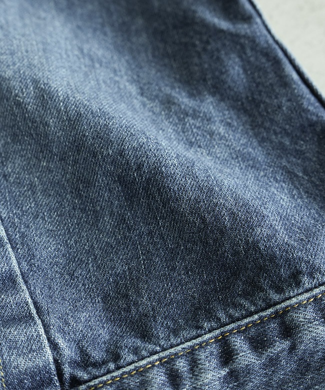 ・通年で着用できるオーソドックスな12オンスのデニム素材に、ヴィンテージ感を漂わせるウォッシュが施されています。