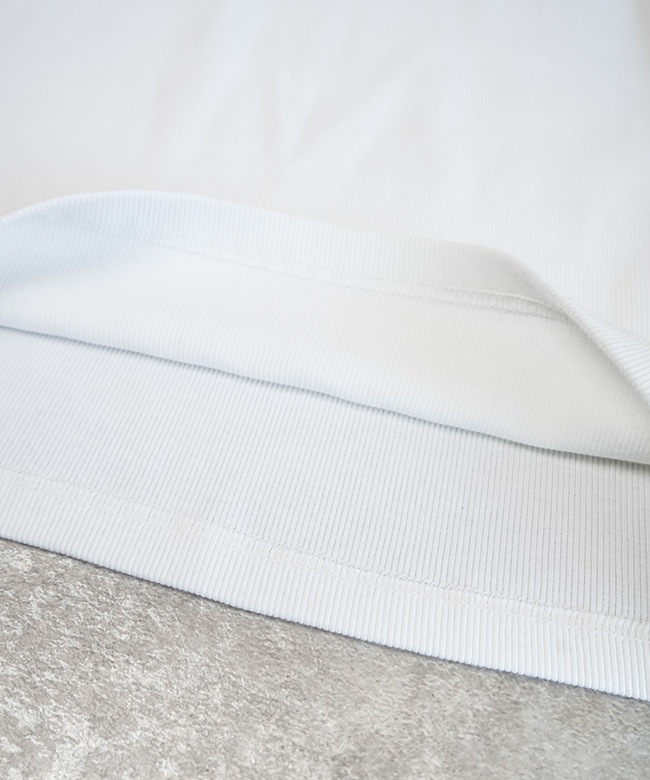 ・ネックラインとアームホールはパイピング処理がされており、着用を重ねても生地がたるみにくく長くご愛用いただけます。