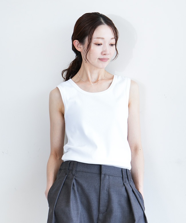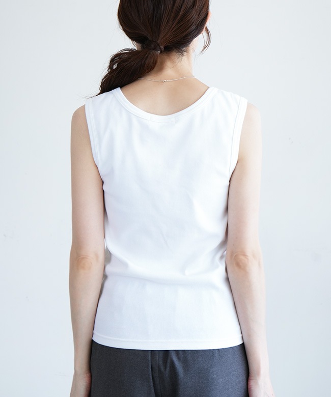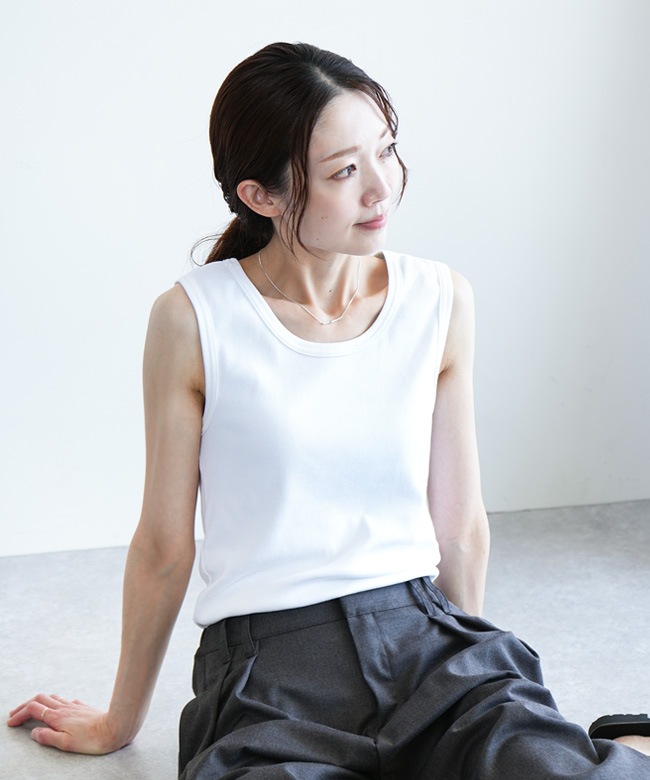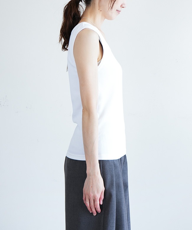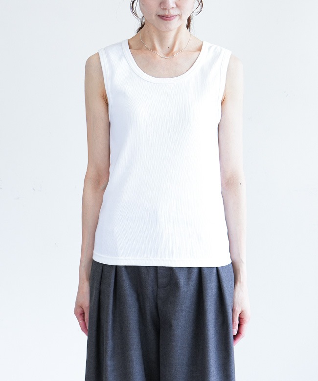 ストレッチ性あり。着心地のよい厚めリブタンクトップ
