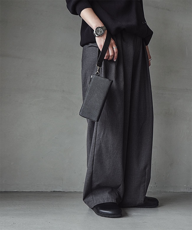 ・使用したのは、落ち着いたマットな質感のレザー。財布としてだけでなく、服に似合うよう選ばれた上質なレザーです。