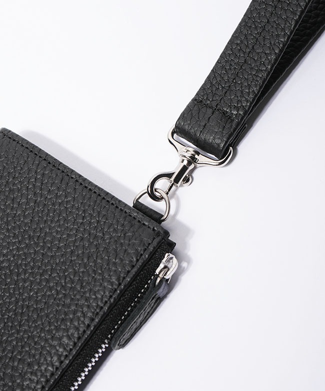 アクセサリーやバッグ感覚で持てる、ストラップ付きレザー財布。