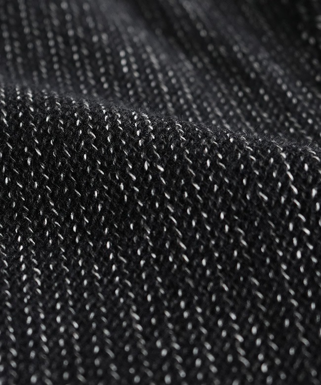 ・独自のマテリアルである『ビーチクロス』は、COTTON 27%、WOOL 73%の混合生地でできており、その生地が織り成す不規則なムラ、凹凸のついた表情から、通称『ごま塩』と呼ばれる生地を忠実に再現。