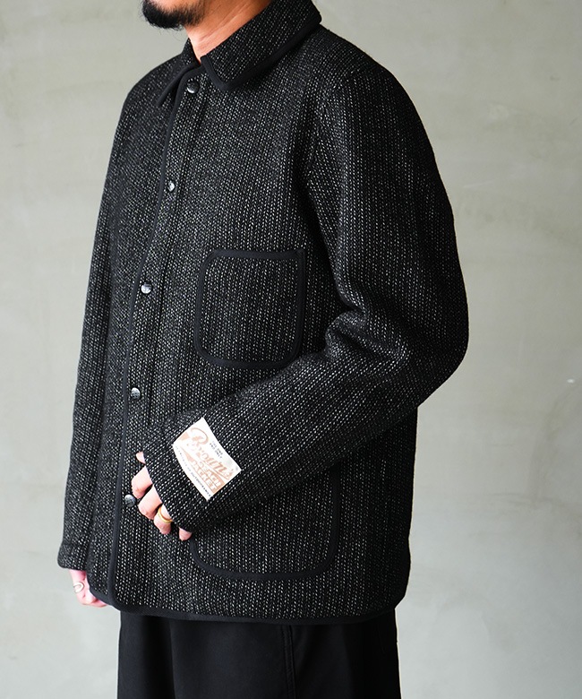 ・ウールとコットンの肉厚な生地を使用しているため、防寒性が高く、ジャケットとコートの中間的な立ち位置。