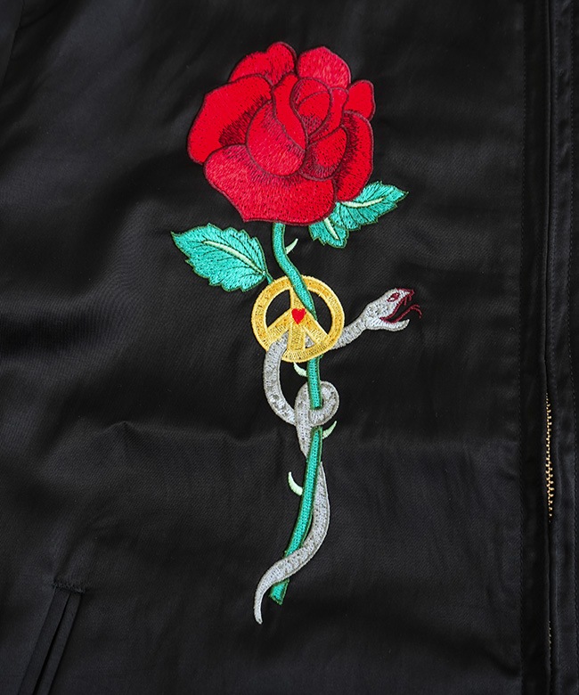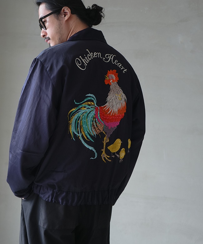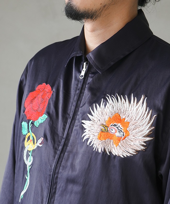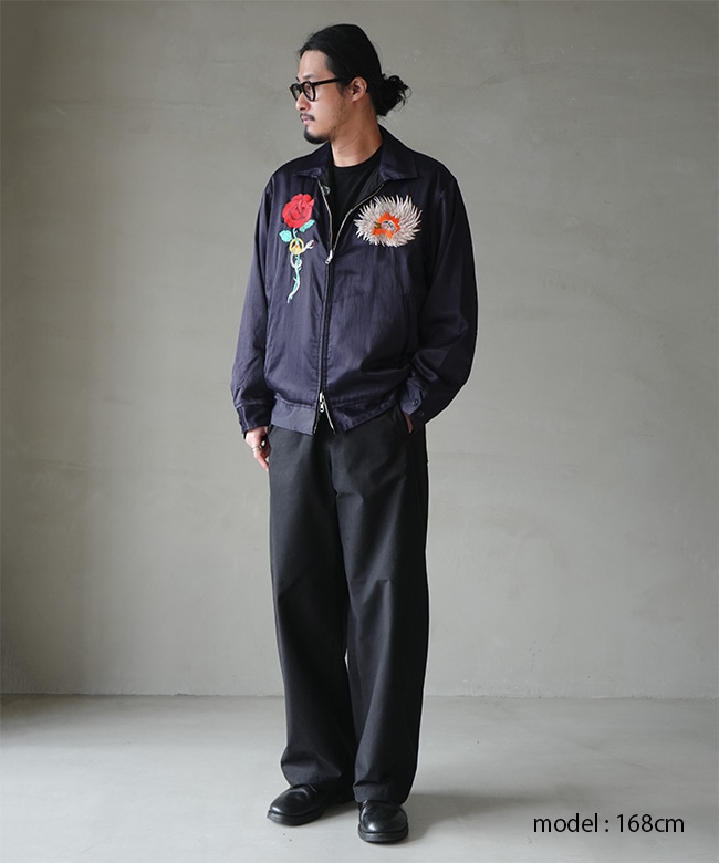 クラシックなスカジャンのディテールから進化し、襟付きカフス付きのドリズラ型ボディへとアップデートされた一着です。