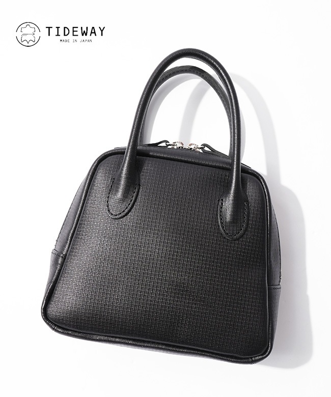 ブランドを代表する「MOSS」レザーを使用した、上品で機能的なボストンバッグにグリッドチェックの型押しを施したNEWデザイン。