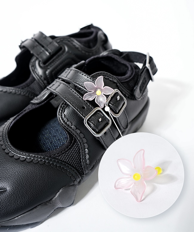 ・付属の花アクセサリーをベルトに飾り付けて、気分を上げて歩き出しましょう。