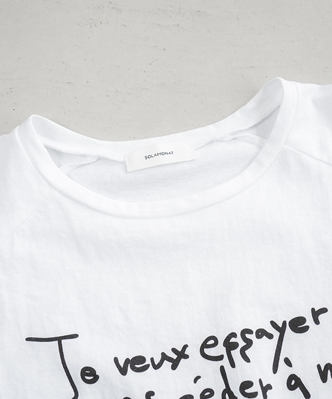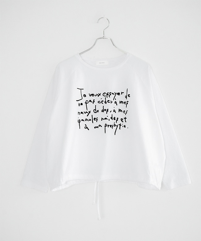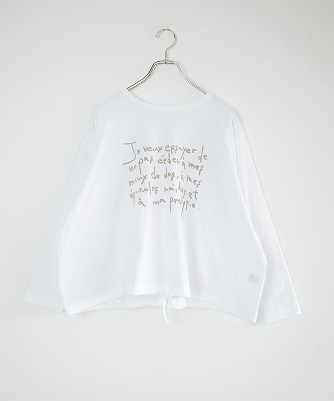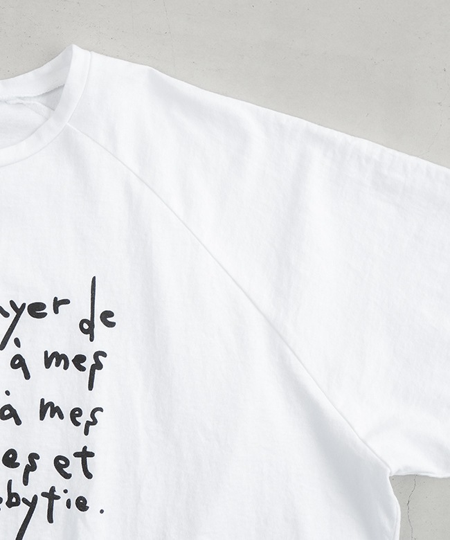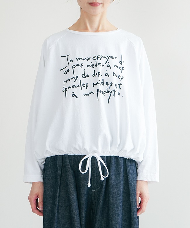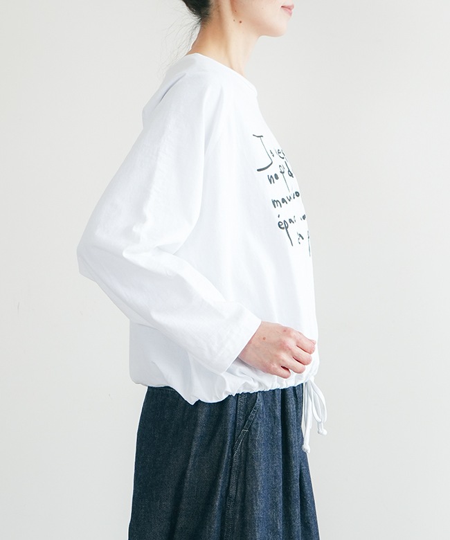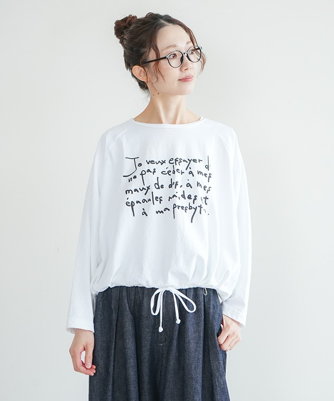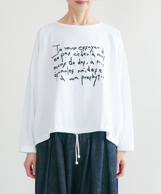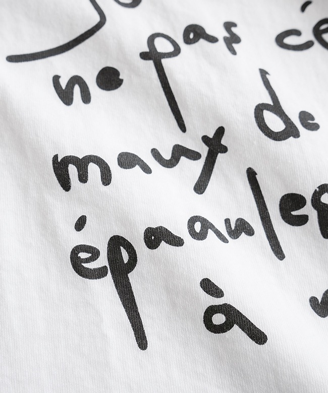 ユーモラスな手書き文字を添えた、カジュアルなTシャツ。