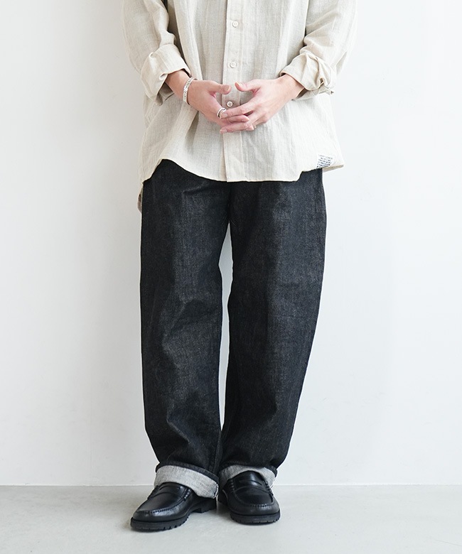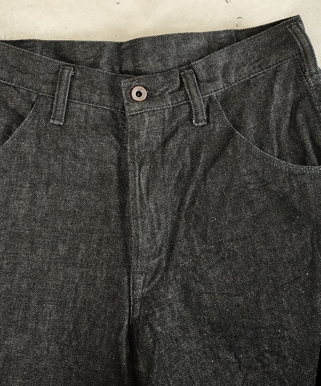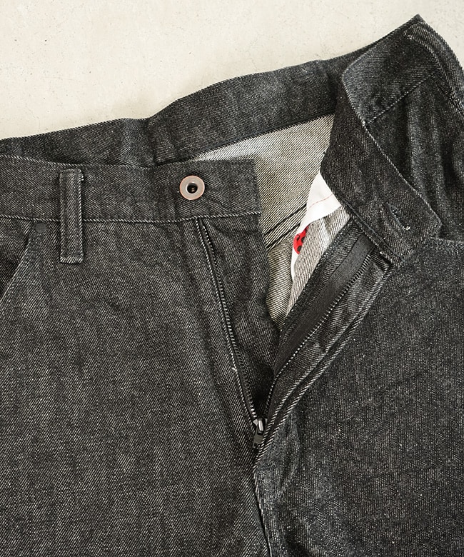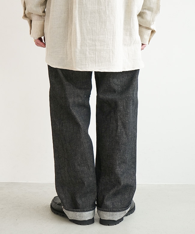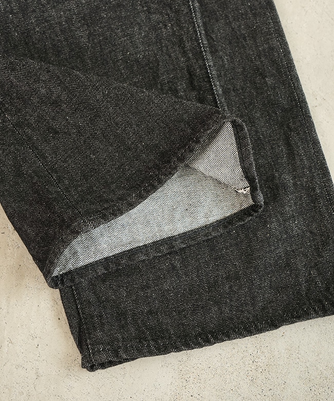 ・ブラックデニム特有の、穿き込むほどにグレーへと変化していく経年変化を楽しめます。