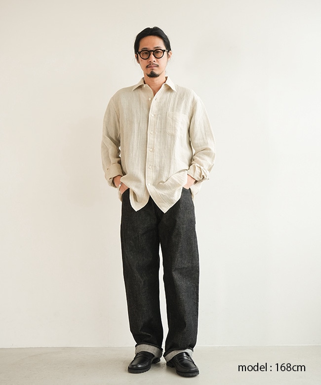 ・一見すると重厚そうに見え、実は11オンスのセルビッジデニムを採用し、11オンスとは思えない見た目と立体的なムラ感。