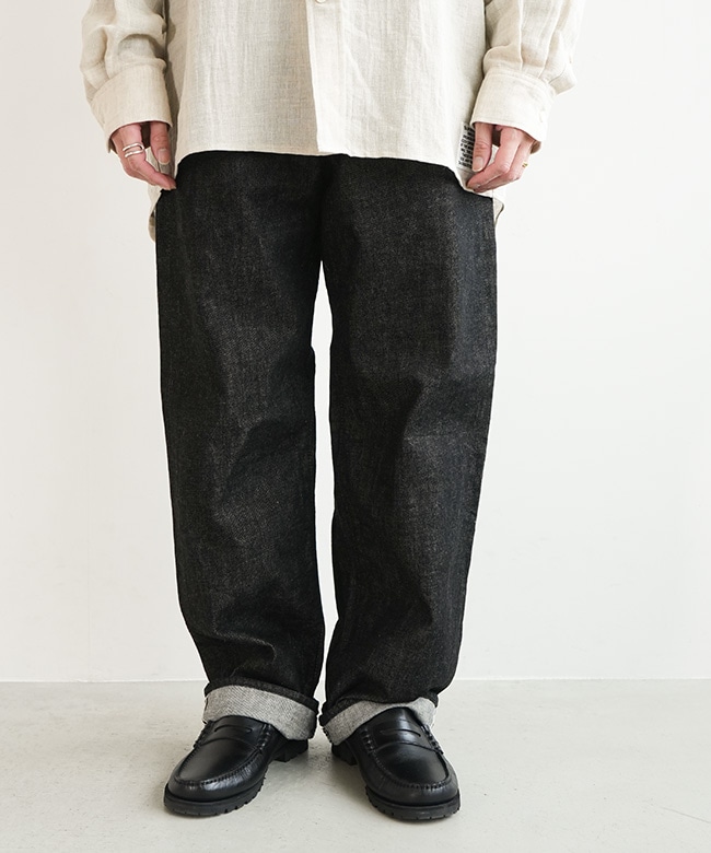 レングスを伸ばしただけではない旧ピーターパンツとは全く違うフォルムを描いています。【シルエット】ペインターパンツやヴィンテージのXX(ダブルエックス)の空気感を持ちつつ、どちらとも違う独自のワイドストレート。