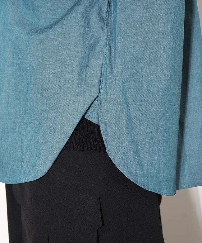 ・素材は細い糸で織られた薄手のコットンシャンブレー。