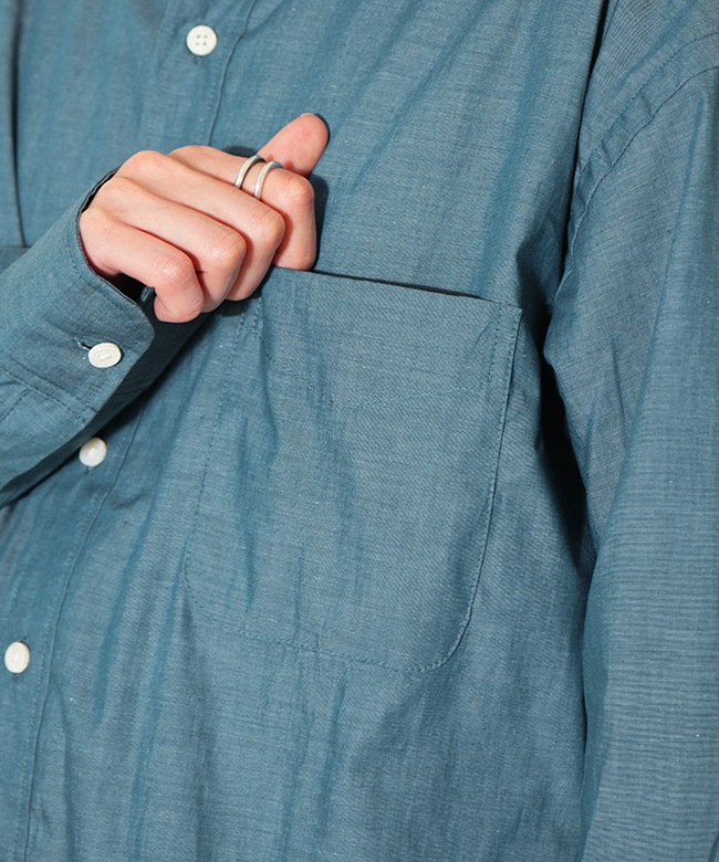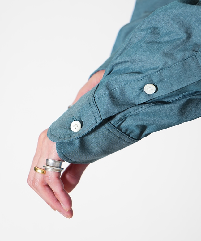 ・見る角度によって色味が若干違って見える玉虫調に仕上がっており、ワークなシャンブレーシャツとは一味違う上品なムードをお楽しみいただけます。
