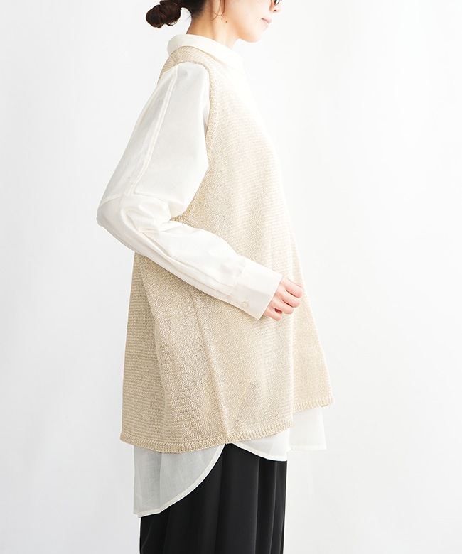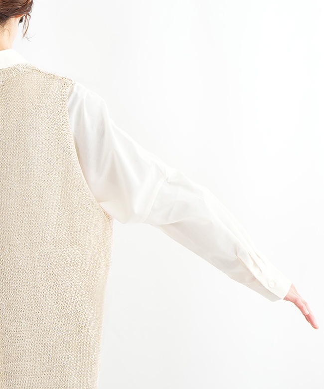 ・アームホールは広めで、袖にボリュームのあるブラウスなどと合わせても◎