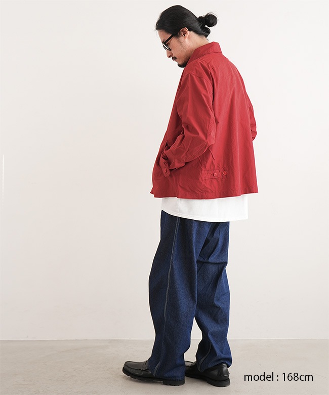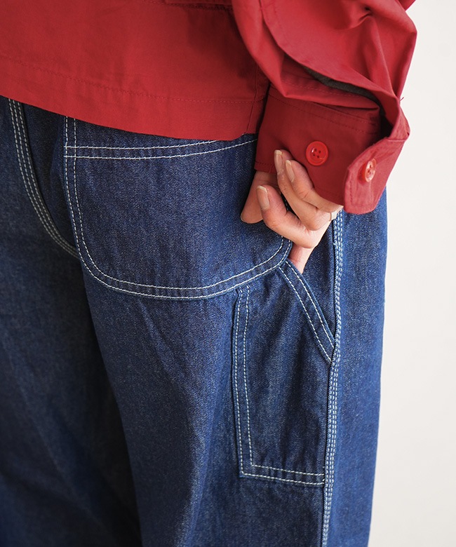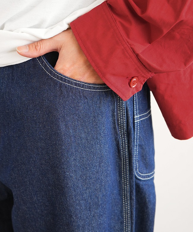 ・生地には10ozのデニム生地を使用しており、季節を問わずお楽しみ頂けます。