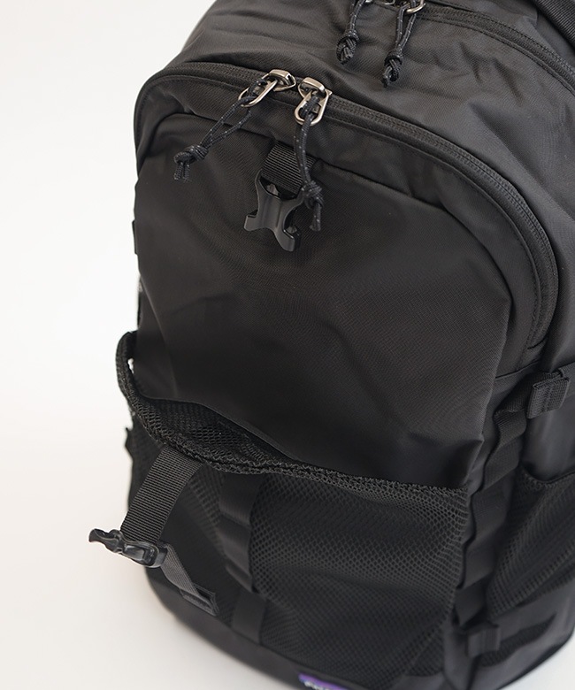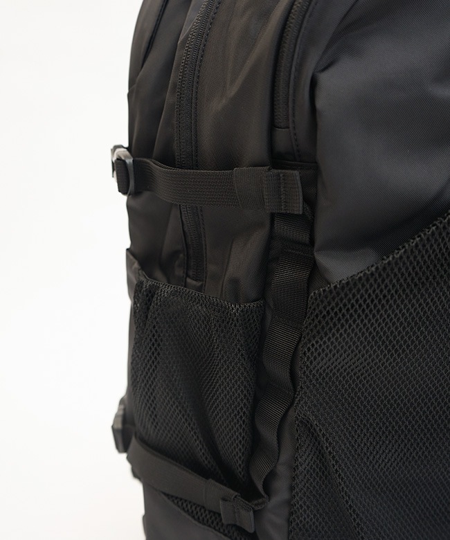 ・フロントのメッシュポケットはさらなる収納スペースを提供し、濡れたり汚れたりした物を分けて運ぶのにも便利。