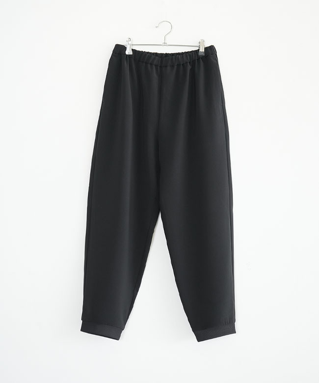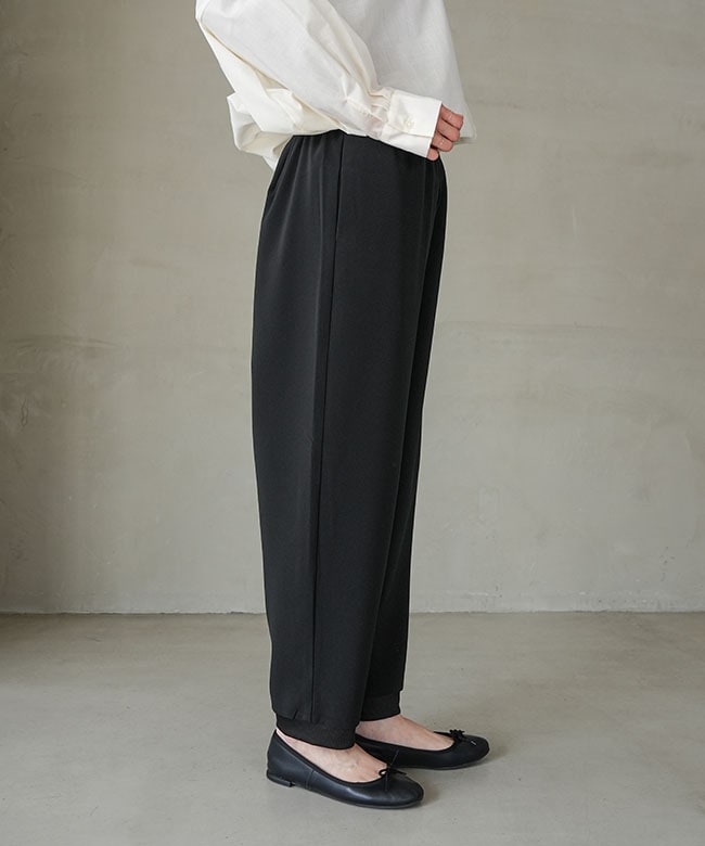 ・裾リブがさりげないアクセントになった、すっきりと楽に穿けるジョガーパンツ。