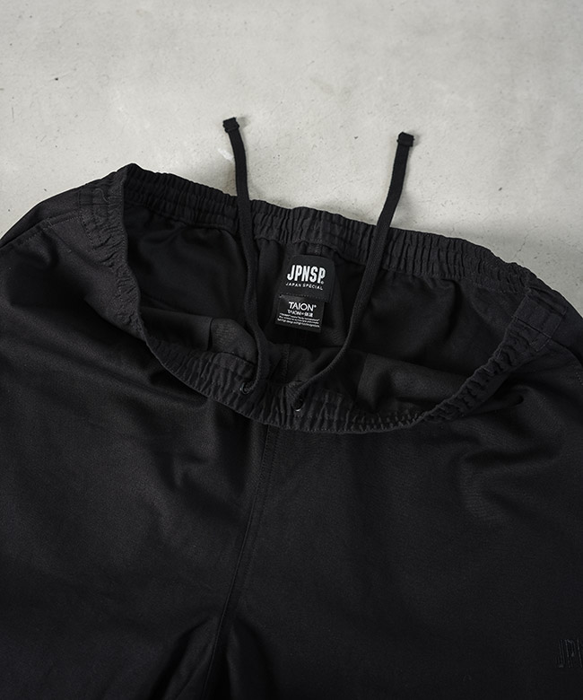 ・「JPNSP」のロゴがさりげないポイントになったシンプルなデザインで、軽さとデザイン性を兼ね備えた、TAIONらしい機能性イージーパンツです。