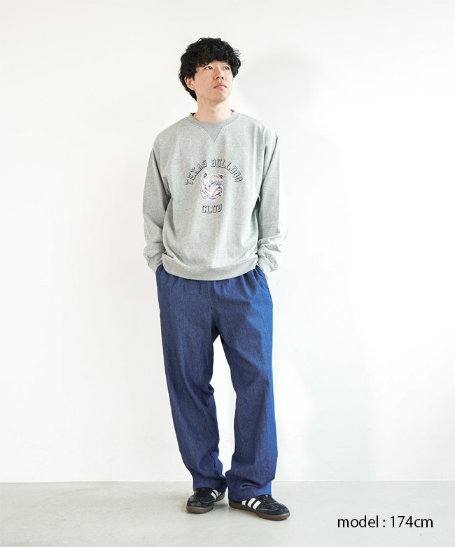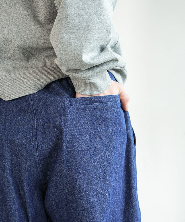 ・ワイド過ぎないすっきりとしたシルエットで、合わせやすくラフに履けるのが魅力です。