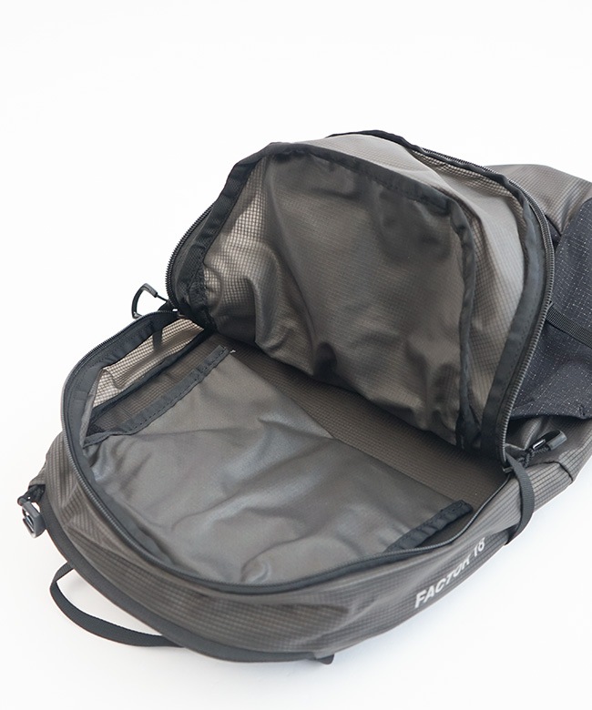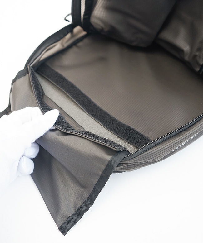 ・メイン気室は荷物にスムーズにアクセスできるファスナー開閉タイプ。