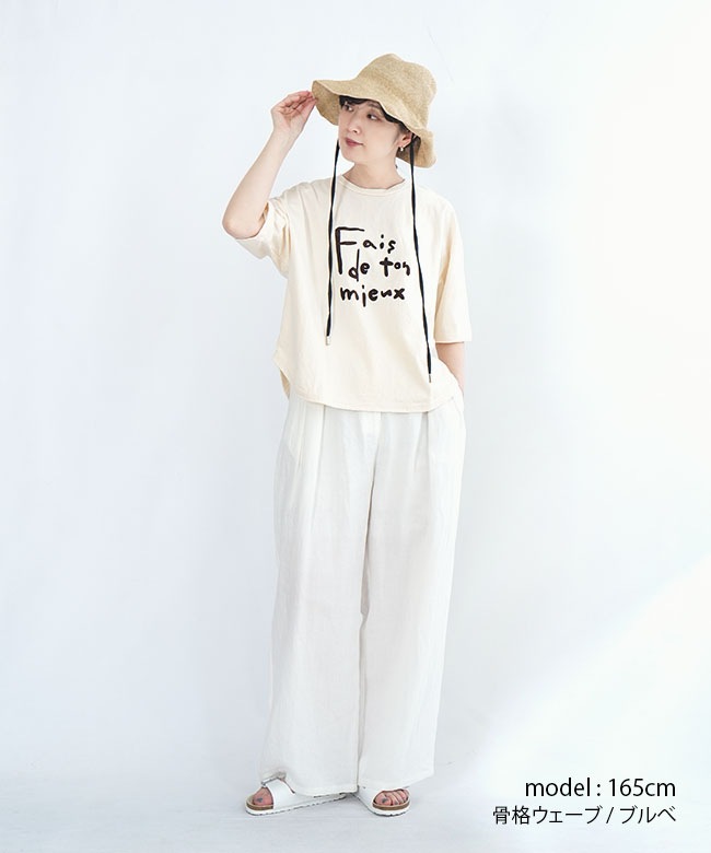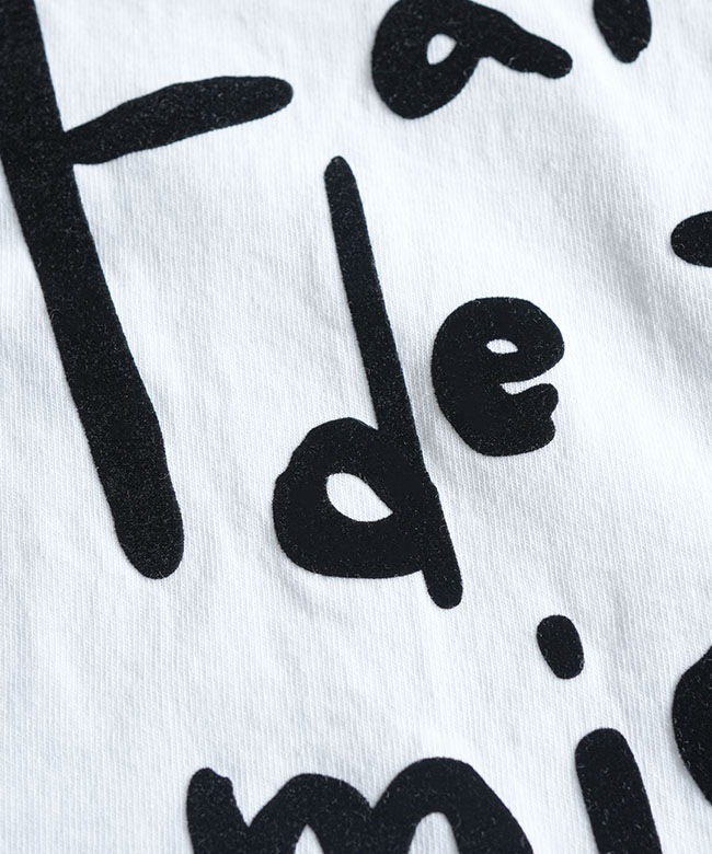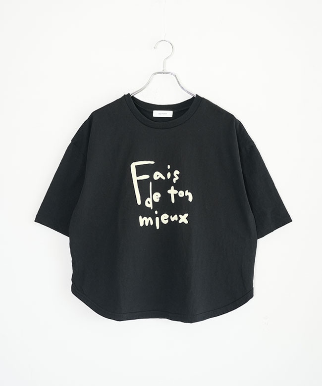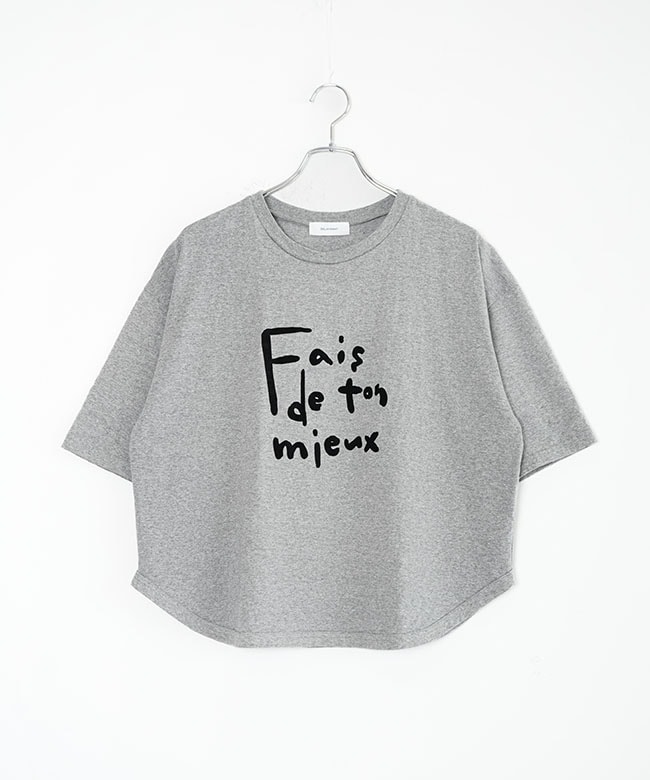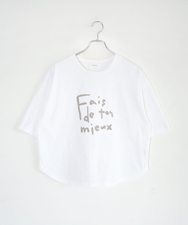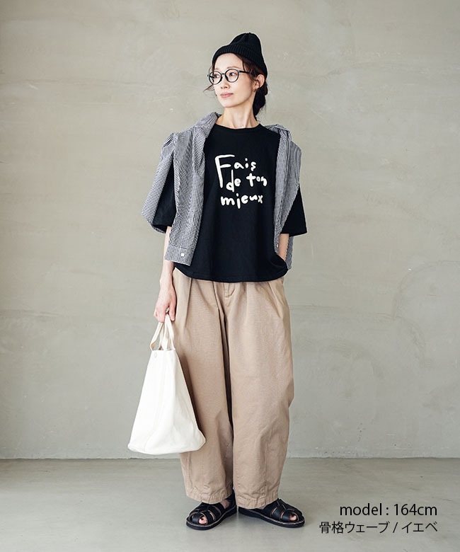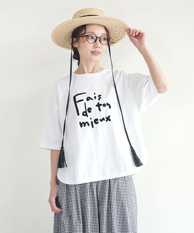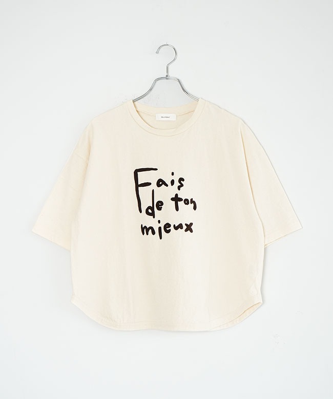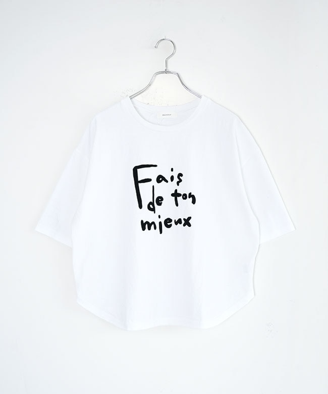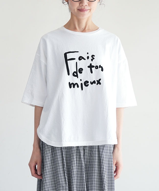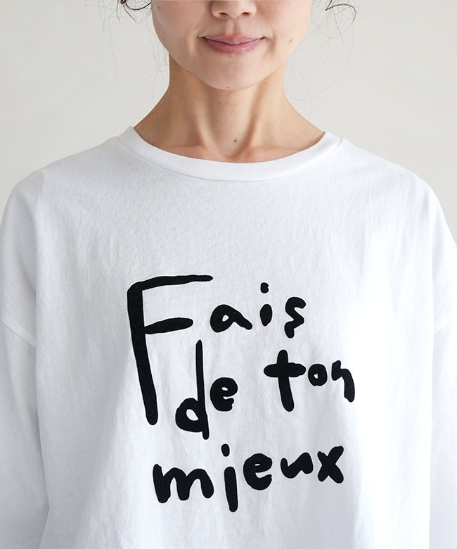 ・プリントされているのは「適度に頑張る」を意味するフランス語。“完璧じゃなくてもいい、自分のペースでいい”のメッセージが、ゆるい手書きで表現されています。