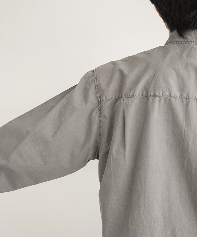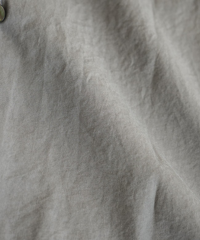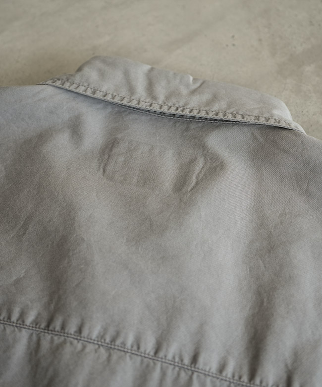 ・製品として完成した後に染色と洗濯を行うガーメントダイ技法を採用しており、着用と洗濯を繰り返す程に少しずつ褪色が発生することで、まるでデニムのような奥深いエイジングをお楽しみいただけます。