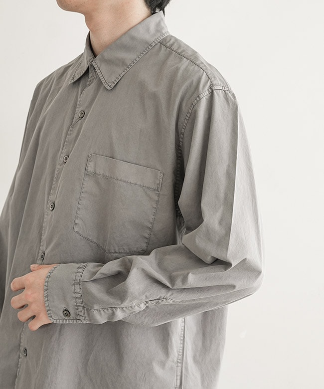 ・ANOTHER OFFICEが得意とするセミオーバーフィットシルエットに、モダンなムードを加えて再解釈したロングスリーブシャツ。